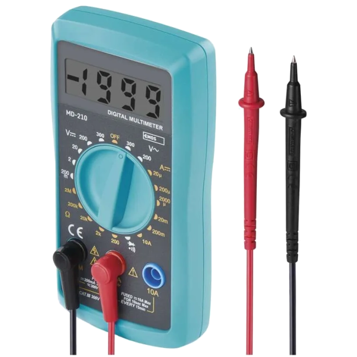 ● Напруга змінного струму 200-300 В;● Напруга постійного струму 200 мВ — 300 В;● Постійний струм 20 мкА — 10 А;● Електричний опір 200 Ом — 2 МОм;● Цілісність ланцюга, перевірка діодів;● Дисплей — 3.5 розряду;● Індикація низького заряду батареї;● Розміри 27 х 70 х 135 мм